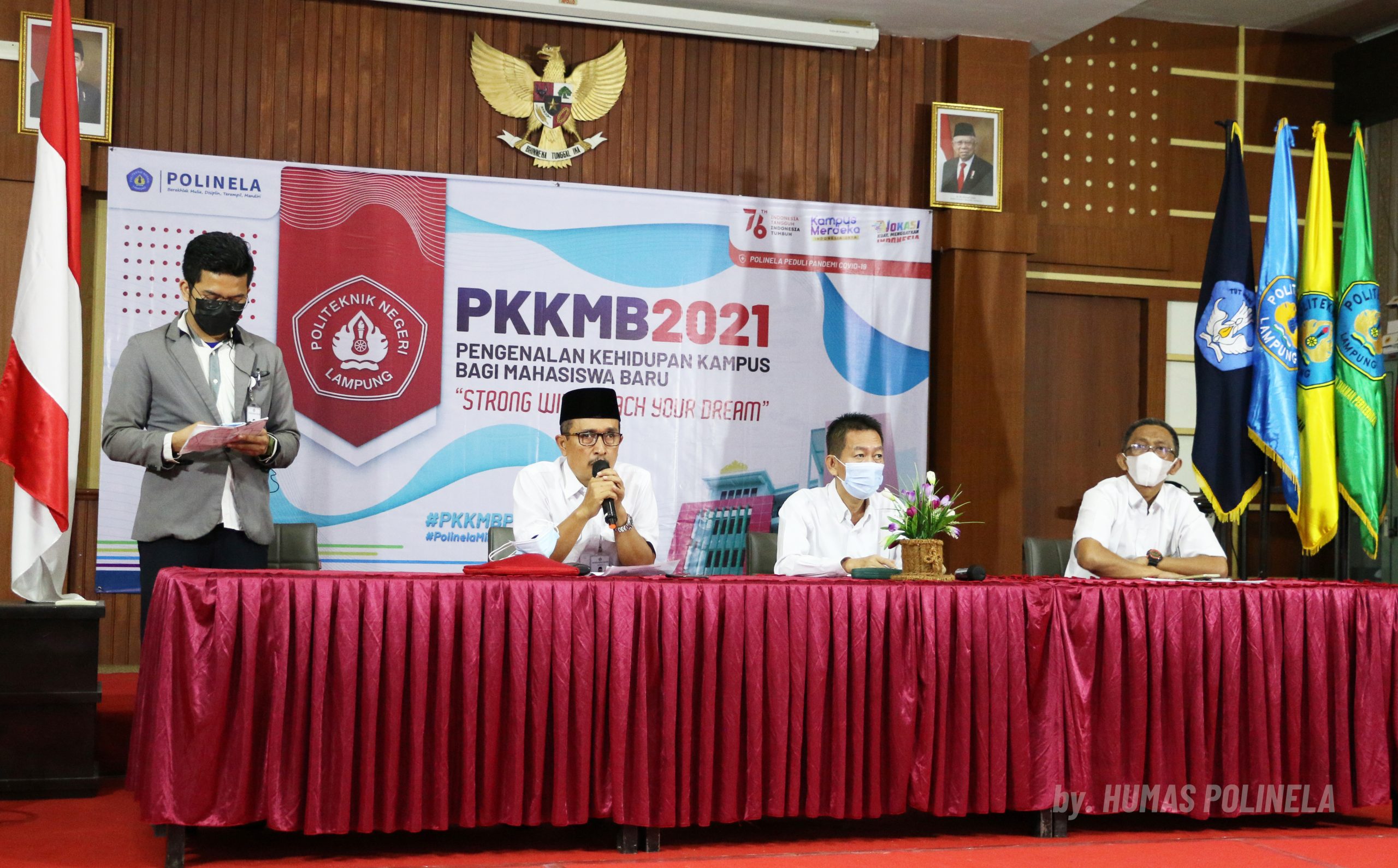 Polinela, Rabu (25/08/2021). Kegiatan Pengenalan Kehidupan Kampus bagi Mahasiswa Baru (PKKMB) Politeknik Negeri Lampung (Polinela) Tahun Akademik 2021/2022, secara resmi dibuka oleh Direktur Polinela, Dr. Ir. Sarono, M.Si. yang didampingi oleh seluruh jajaran Pimpinan Polinela secara daring via Zoom Meeting. Kegiatan ini diikuti oleh 1.270 mahasiswa dan akan berlangsung dari tanggal 25 s.d. 27 Agustus 2021.