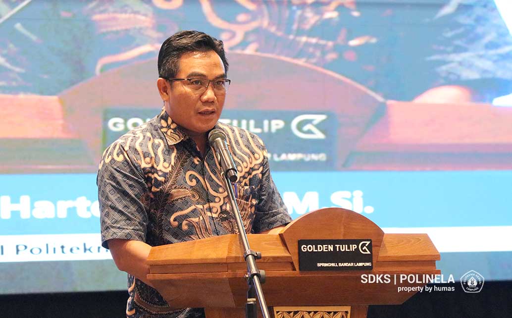Sambutan selanjutnya disampaikan oleh Direktur Polinela yang diwakili oleh Wakil Direktur Bidang Akademik, Dwi Puji Hartono, S.Pi., M.Si. Beliau menekankan peran Polinela dalam mencetak SDM berkualitas yang siap berkontribusi di berbagai sektor. “Sebagai institusi pendidikan vokasi, Polinela terus berkomitmen mendukung pengembangan daerah melalui riset, inovasi, dan peningkatan kompetensi SDM,” ujar Dwi Puji Hartono sekaligus membuka kegiatan secara resmi.