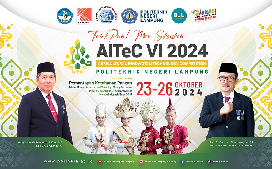 Polinela, Senin (21/10/2024). Politeknik Negeri Lampung (Polinela) menjadi tuan rumah Agricultural Innovation Technology Competition (AITeC) ke-6, yang akan diselenggarakan pada tanggal 23 hingga 26 Oktober 2024 mendatang. AITeC merupakan ajang bergengsi yang menjadi wadah bagi mahasiswa Politeknik seluruh Indonesia