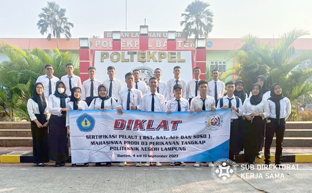 Politeknik Negeri Lampung Berkomitmen untuk mendukung peningkatan keahlian mahasiswa melalui proses sertifikasi sesuai dengan kebutuhan industri, kegiatan Diklat ini merupakan penerapan program kerjasama antara Polinela dan Poltekpel Banten yang dilakukan setiap tahun, selain kegiatan Penelitian dan Pengabdian Masyarakat.