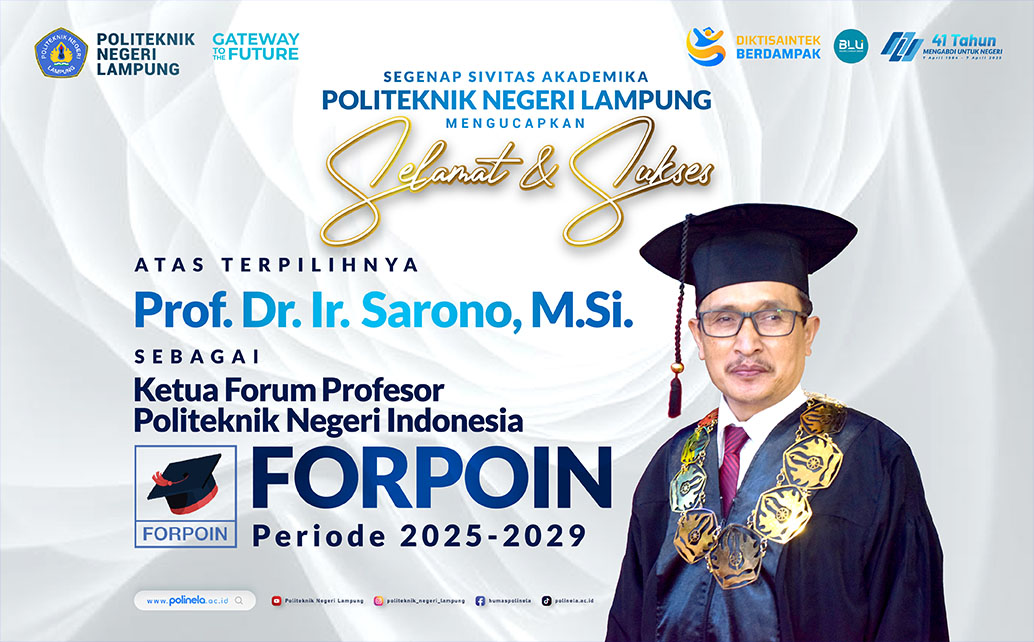 Polinela, Kamis (02/09/2025). Civitas akademika Politeknik Negeri Lampung (Polinela) menorehkan prestasi membanggakan. Direktur Polinela, Prof. Dr. Ir. Sarono, M.Si., resmi terpilih sebagai Ketua Forum Profesor Politeknik Negeri Lampung (Forpoin) untuk periode 2025–2029.