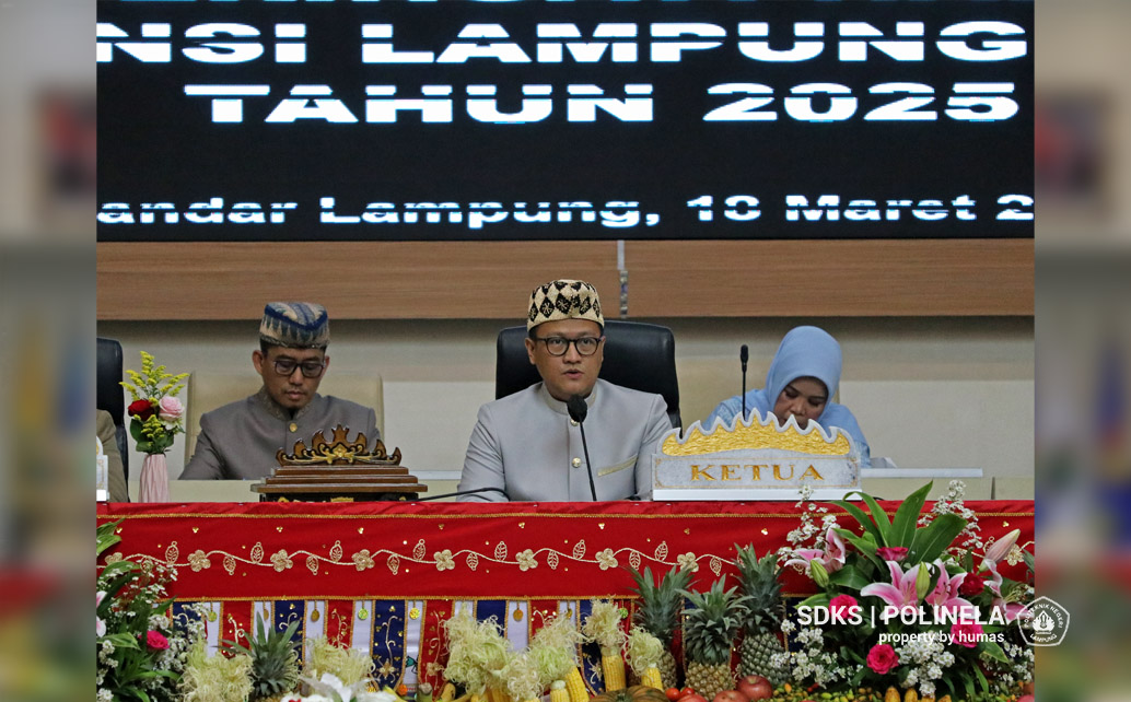 Polinela, Rabu (19/03/2025). Politeknik Negeri Lampung (Polinela) menunjukkan komitmennya dalam mendukung pembangunan daerah dengan menghadiri berbagai agenda strategis di tingkat provinsi. Direktur Polinela, Prof. Dr. Ir. Sarono, M.Si., menghadiri undangan Dewan Perwakilan Rakyat Daerah (DPRD) Provinsi Lampung dalam rangka Peringatan Hari Jadi ke-61 Provinsi Lampung. Kegiatan ini berlangsung di Ruang Sidang Paripurna DPRD Provinsi Lampung dan dihadiri oleh berbagai pemangku kepentingan daerah.