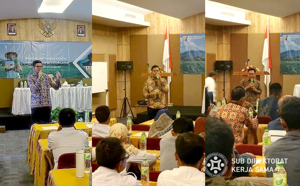Polinela, Selasa (24/10/2023). Sejumlah dosen dari Program Studi Teknologi Produksi Tanaman Pangan (TPTP) di Politeknik Negeri Lampung (Polinela) telah berperan sebagai narasumber utama dalam acara Gerakan Tanam (GenTa) Organik yang digelar oleh Dinas Ketahanan Pangan, Tanaman Pangan, dan Hortikultura Provinsi Lampung. Acara prestisius ini berlangsung di Hotel Arinas, Bandar Lampung, pada 18-19 Oktober 2023.