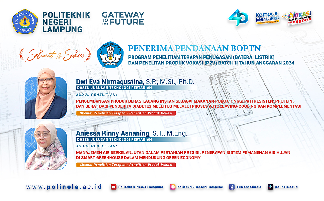 Dosen Polinela Raih Bantuan Pendanaan Program Penelitian Terapan Penugasan dan Penelitian Produk Vokasi