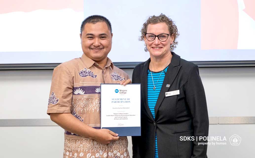 Polinela, Senin (16/12/2024). Politeknik Negeri Lampung (Polinela) kembali menunjukkan komitmennya dalam meningkatkan kualitas pendidikan vokasi melalui keterlibatan aktif dosennya dalam program pengembangan kompetensi internasional. Gusma Gama Maradon, S.Pt., M.Si., Koordinator Program Studi Teknologi Pakan Ternak Polinela, telah sukses menyelesaikan program “Leadership in Technology and Vocational Education and Training” yang berlangsung di Niagara College, Kanada, dari tanggal 17 hingga 29 November 2024.