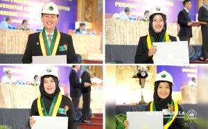 Di barisan depan, empat dosen Politeknik Negeri Lampung (Polinela) ikut berdiri menerima sumpah insinyur. Mereka adalah Dr. Ir. Zukryandry, S.T., M.Si.; Dr. Ir. Widia Rini Hartari, S.TP., M.Si.; Ir. Maryanti, S.TP., M.Si.; dan Ir. Febrina Delvitasari, S.TP., M.Si. Keempatnya menuntaskan program berbasis praktik industri selama satu tahun penuh, termasuk penilaian proyek rekayasa yang diawasi langsung oleh Asosiasi Profesi Insinyur Indonesia.