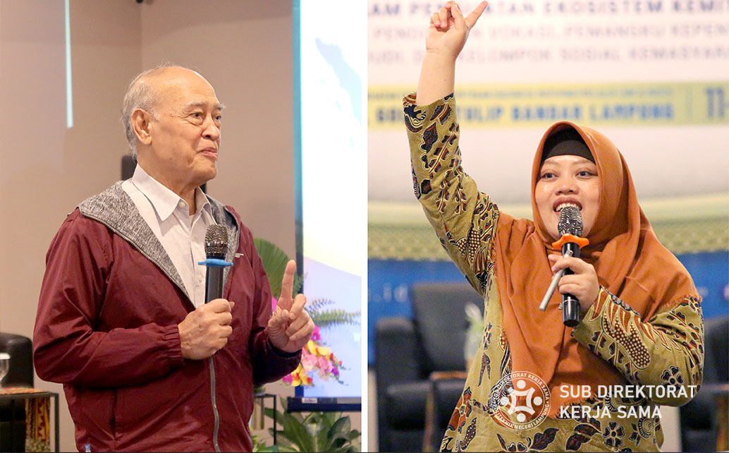 Pada hari kedua ini, terdapat penyampaian dua materi utama dari Mitras DUDI selaku Pakar Ekosistem Kemitraan, yaitu Ir. Adil Basuki Ahza, M.S., Ph.D., dan Dr. Rifelly Dewi Astuti, S.E., M.M., yang disampaikan kepada 27 SMK di Provinsi Lampung serta dosen Politeknik Negeri Lampung yang terdiri dari 8 jurusan.