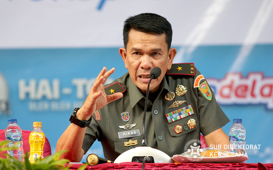 Brigadir Jenderal TNI Rikas Hidayatullah, S.E., M.M. selaku Komandan Korem 043/Garuda Hitam memberikan materi mengenai kehidupan berbangsa, bernegara, dan pembinaan kesadaran bela negara