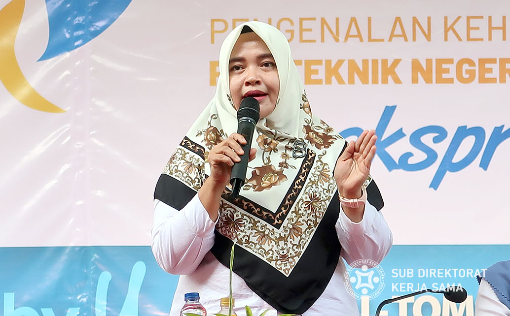 Sekretaris Jurusan Ekonomi dan Bisnis sekaligus Ketua Satuan Tugas Pencegahan dan Penanganan Kekerasan Seksual (Satgas PPKS) Polinela, Marlinda Apriyani, S.P., M.P., memberikan materi mengenai pengembangan karakter mahasiswa.