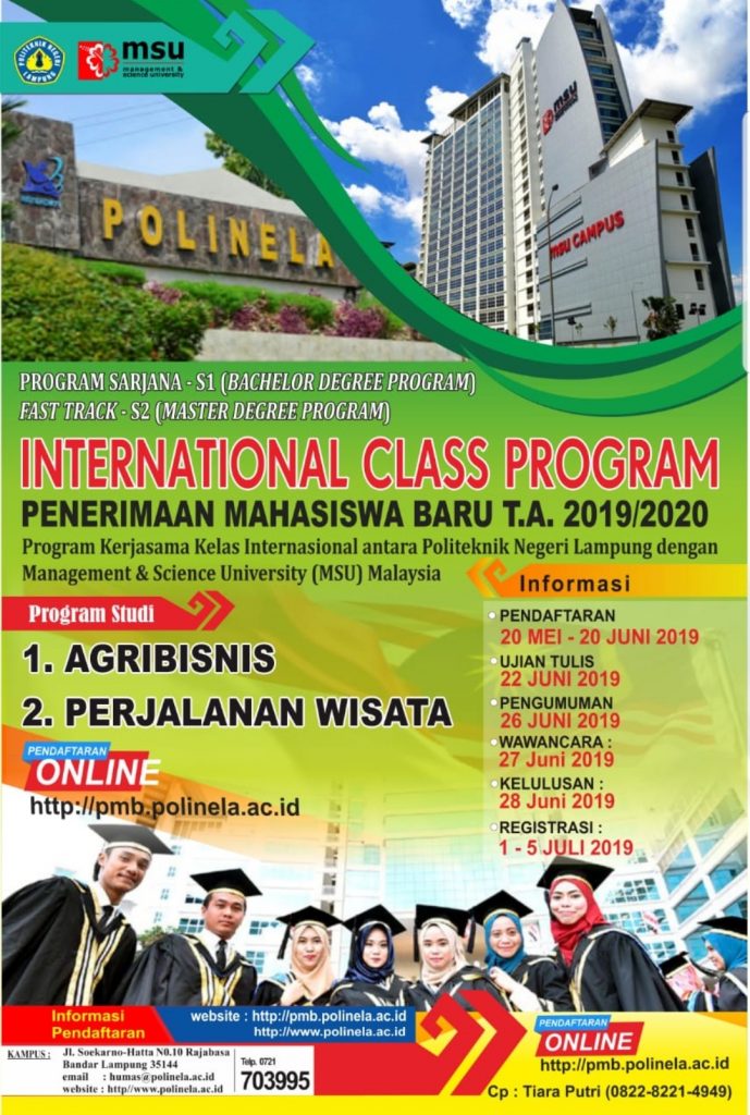 Senin (20/5/2019). International Class Program Merupakan Program Kerjasama Kelas Internasional antara Politeknik Negeri Lampung dengan Management & Science University (MSU) MALAYSIA.