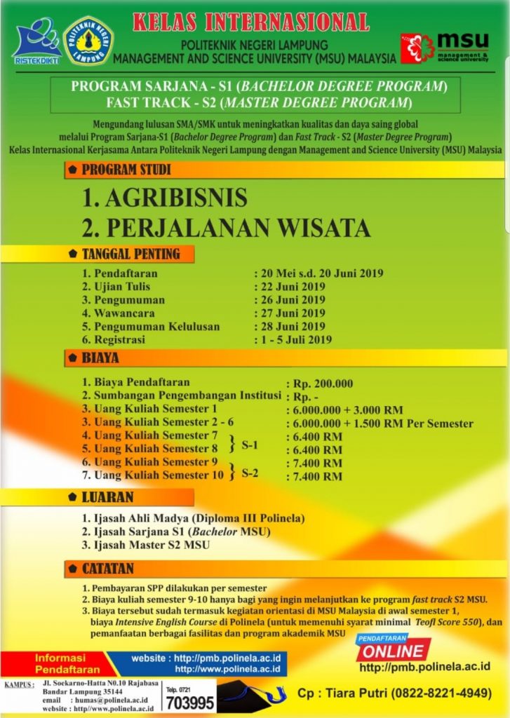 Lampiran : Brosur Kelas Internasional Politeknik Negeri Lampung bisa di download disini
