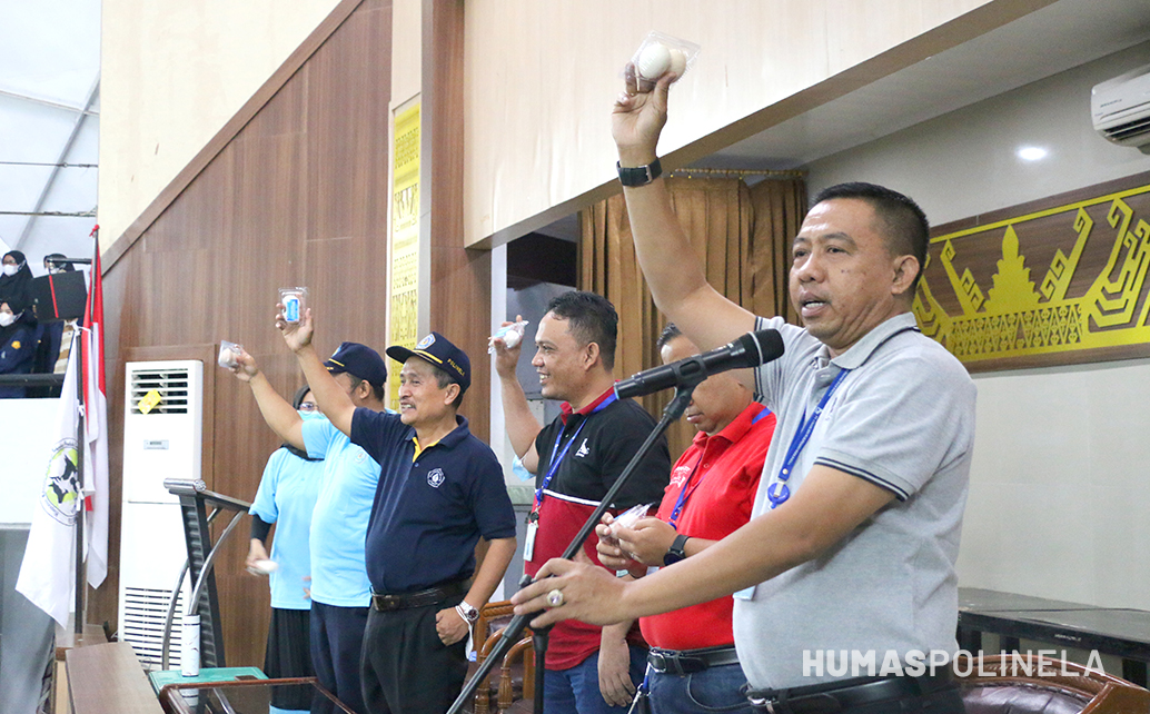Kegiatan di awali dengan amanat dan deklarasi oleh Direktur Polinela, Dr. Ir. Sarono, M.Si., yang menyampaikan, “Agar berprestasi dan menjaga kesehatan juga kekuatan setiap pagi harus sarapan, sarapan yang paling efisien adalah telur. Jadi telur 2 butir ini cukup proteinnya, cukup lemaknya bisa sampai siang hari.