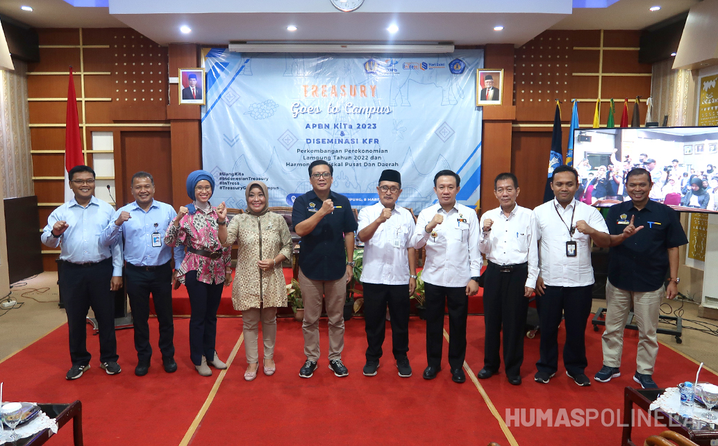 Polinela, Kamis (09/03/2023). Kanwil Direktorat Jenderal Perbendaharaan (DJPb) Provinsi Lampung menyelenggarakan kegiatan “Treasury Goes To Campus” dan Desiminasi Kajian Fiskal Regional Lampung, di Politeknik Negeri Lampung (Polinela) pada Rabu, tanggal 8 Maret 2023. Kegiatan tersebut bertujuan untuk mempresentasikan tugas pokok fungsi Direktorat Jenderal Kebendaharaan agar dipahami oleh masyarakat luas khususnya mahasiswa Politeknik Negeri Lampung.