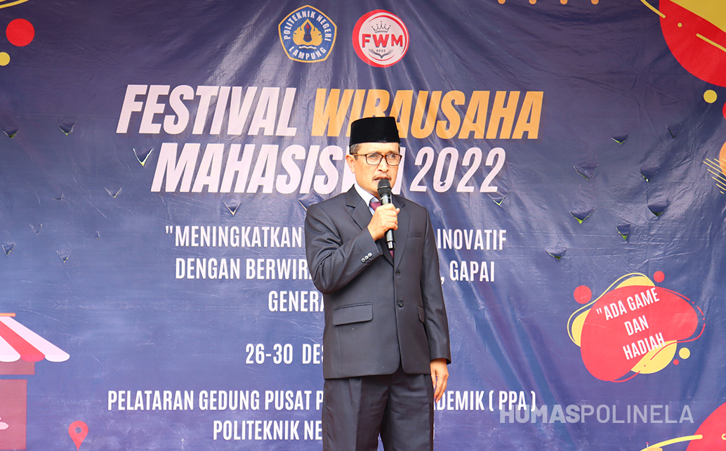 Direktur Polinela Dr. Ir, Sarono, M.Si hadir pada hari penutupan kegiatan Festival Wirausaha Mahasiswa 2022