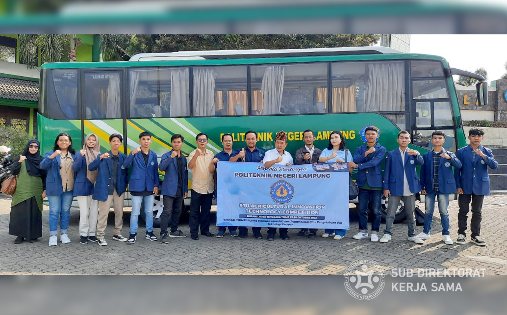 Polinela, Rabu (25/10/2023). Dalam rangka mengikuti ajang “Kompetisi Inovasi Teknologi Bidang Pertanian”, Politeknik Negeri Lampung (Polinela) mengirimkan kontingen mahasiswa ke Politeknik Pertanian Negeri Kupang, Nusa Tenggara Timur. Sebanyak sembilan mahasiswa yang terpilih akan mewakili Politeknik Negeri Lampung dalam berbagai lomba yang akan berlangsung mulai tanggal 25 hingga 27 Oktober 2023.