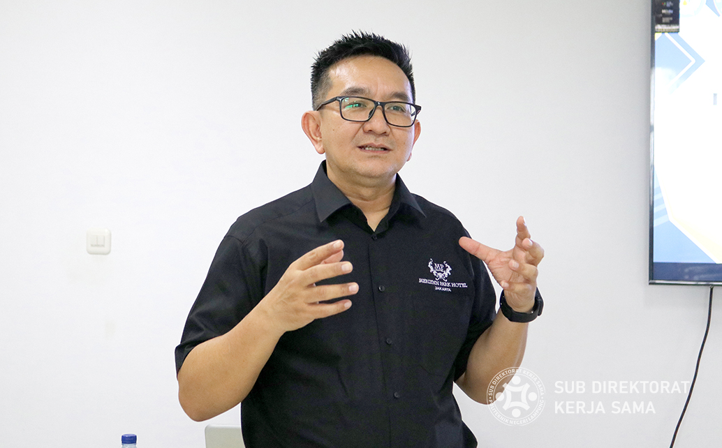 Kuliah industri yang berlangsung di Gedung Kuliah Bersama ruang 3.6 dimulai dengan sambutan dari Koordinator Program Studi Pengelolaan Perhotelan, Yusep Windhu Ari Wibowo, S.Pd., M.Pd. Dalam sambutannya, menekankan pentingnya mahasiswa mendapatkan pengalaman langsung dari praktisi industri sebagai pelengkap teori yang dipelajari di kelas. “Kegiatan seperti ini diharapkan dapat memperkaya pengetahuan dan keterampilan mahasiswa, serta memberikan gambaran nyata tentang dinamika industri perhotelan,” ujar Yusep Windhu Ari Wibowo.