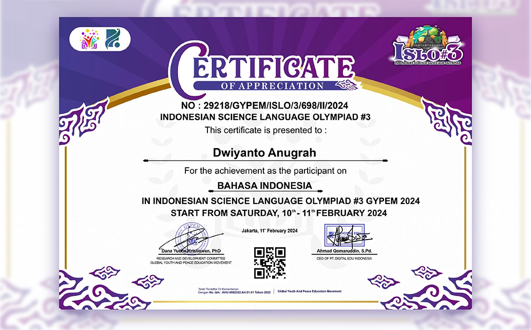 Melalui partisipasinya dalam ISLO #3, Dwiyanto Anugrah juga mengukuhkan reputasi Polinela sebagai lembaga pendidikan yang berkomitmen untuk menghasilkan mahasiswa yang berkualitas dan berprestasi di berbagai bidang. Keberhasilannya dalam perlombaan ini juga menegaskan komitmen Gypem Indonesia dalam mendukung perkembangan ilmu pengetahuan dan bahasa di kalangan generasi muda Indonesia.