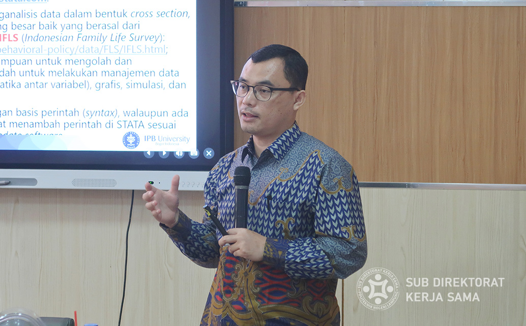 Pada kegiatan In House Training ini, menampilkan Dr. Feryanto, S.P., M.SI, seorang pakar dari Departemen Agribisnis Fakultas Ekonomi Manajemen Institut Pertanian Bogor (IPB), sebagai pemateri. Dr. Feryanto akan memandu peserta dalam pengenalan dan pengolahan data pada penelitian agribisnis menggunakan STATA, sebuah perangkat lunak statistik dan analisis data yang sangat populer di kalangan peneliti.