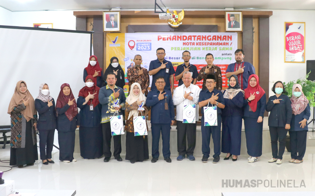 Penandatanganan dilakukan langsung oleh Direktur Polinela Dr. Ir Sarono, M.Si dan Ketua Balai Besar Pengawas Obat dan Makanan Lampung Drs. Zamroni, Apt. disaksikan Wakil Direktur IV Eko Win Kenali, S.Kom., M.Cs.