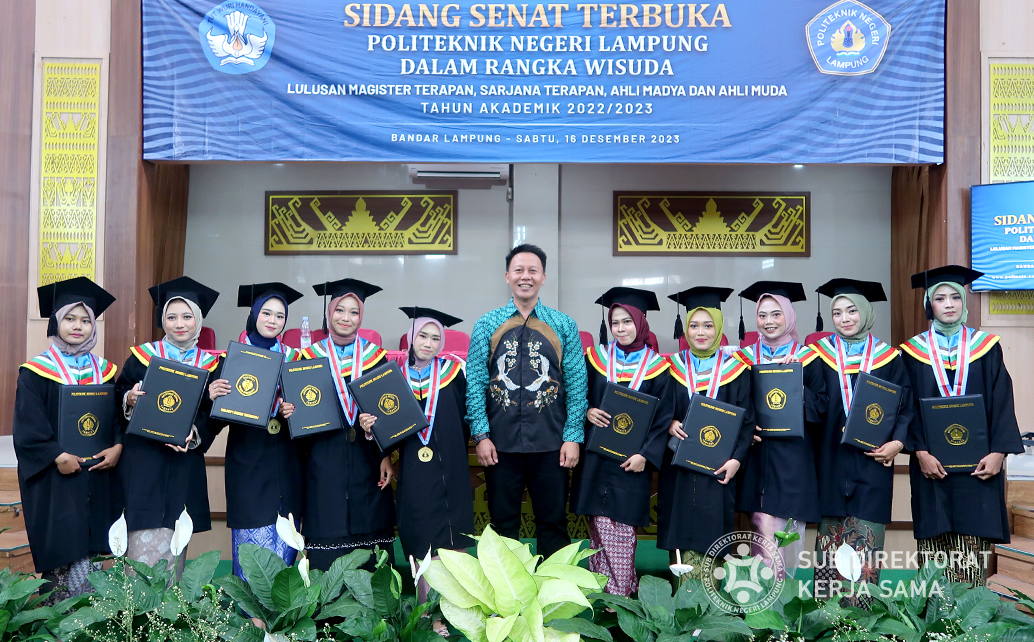 Polinela, Rabu (20/12/2023). Pada Sabtu, 16 Desember lalu, Politeknik Negeri Lampung (Polinela) menggelar kegiatan wisuda. Salah satu momen paling berkesan dalam wisuda tersebut adalah kehadiran 10 mahasiswa dari Jurusan Teknologi Pertanian Program Studi D2 Pengelolaan Patiseri.