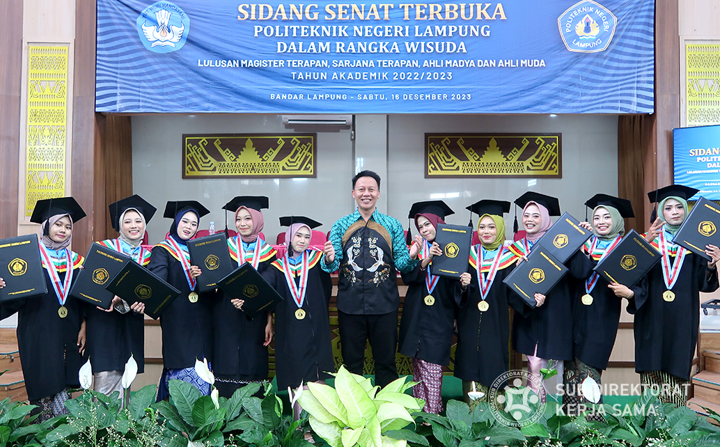Polinela, Rabu (20/12/2023). Pada Sabtu, 16 Desember lalu, Politeknik Negeri Lampung (Polinela) menggelar kegiatan wisuda. Salah satu momen paling berkesan dalam wisuda tersebut adalah kehadiran 10 mahasiswa dari Jurusan Teknologi Pertanian Program Studi D2 Pengelolaan Patiseri.