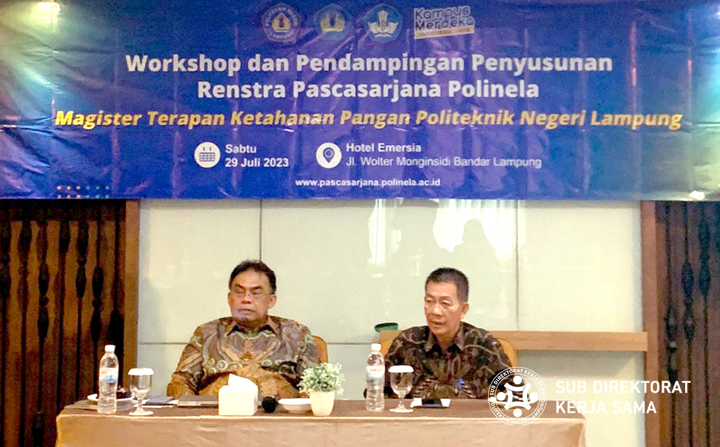 Polinela, Selasa (01/08/2023). Kegiatan workshop dan pendampingan penyusunan renstra persiapan pembentukan UPPS Pascasarjana Polinela merupakan sebuah upaya penting yang dilakukan untuk merencanakan pengembangan institusi Polinela. Sebagaimana diamanatkan dalam RPJP Polinela 2020-2045 bahwa Polinela akan membuka Program Studi jenjang S2 dan S3 Terapan. Diselenggarakan pada hari Sabtu, 29 Juli 2023.
