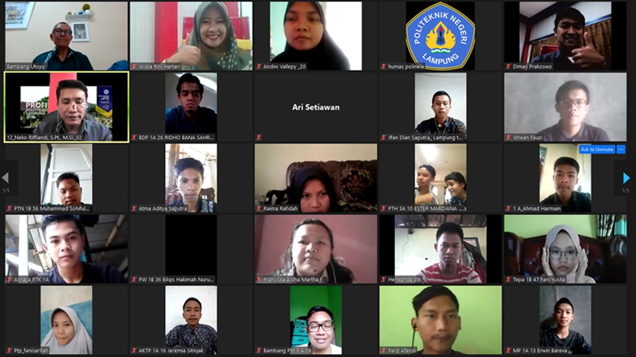 Polinela, Senin (02/11/2020). Politeknik Negeri Lampung (Polinela) mengadakan Pelatihan Program Kreatifitas Mahasiswa Polinela pada tanggal 31 Oktober 2020 Via Daring. Acara dipandu oleh Neko Riffandi, S.Pt., M.Si. dengan narasumber Ir. Bambang Utoyo M.P. Dosen Polinela dan Dr. Mahrus Ali, S.Pi., M.P. Dosen Universitas Lampung, keduanya merupakan Reviewer PKM Nasional. Kegiatan ini dilaksanakan dengan media Zoom Meeting dan di siarkan langsung Via Live Streaming Youtube.