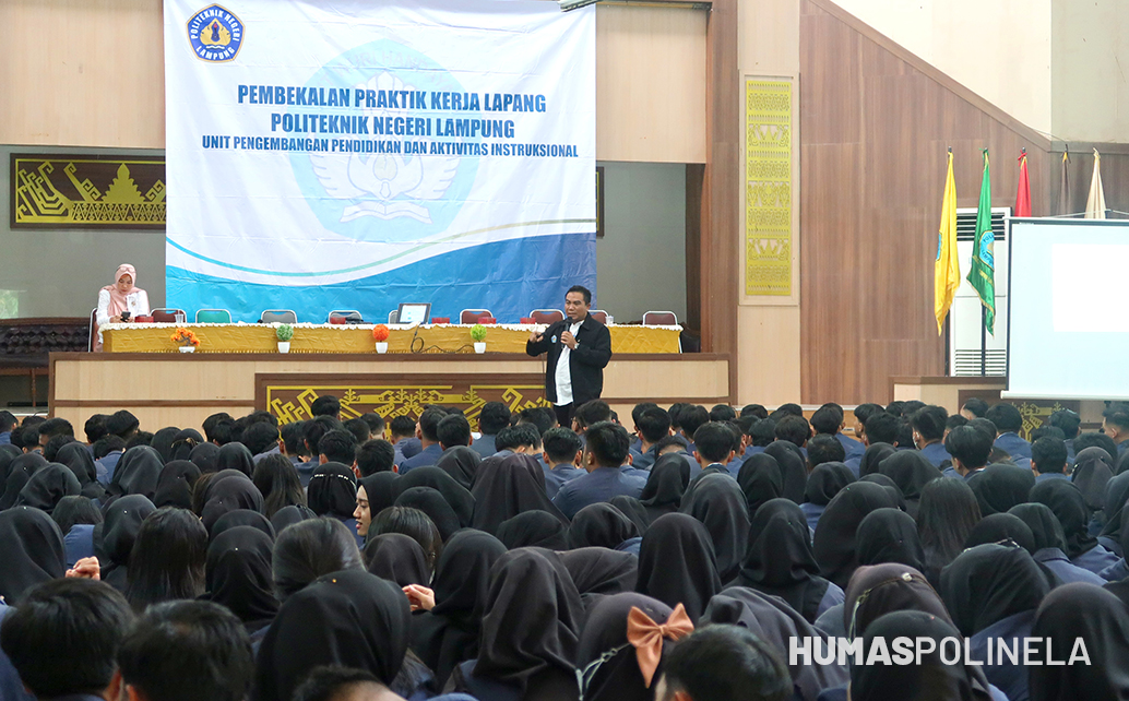 Polinela, Rabu (15/02/2023). Unit Pengembangan Pendidikan dan Aktivitas Instruksional (UP2AI) Politeknik Negeri Lampung (Polinela) menyelenggarakan Pembekalan Praktik Kerja Lapang (PKL) bertempat di Gedung Serba Guna (GSG) Polinela. Pembekalan dihadiri oleh Dr. Ir. Sarono, M.Si., Pembantu Direktur I Dwi Puji Hartono, S.Pi., M.Si., Pembantu Direktur III Agung Adi Candra, S.K.H., M.Si., Ketua Jurusan serta Ketua Program Studi di lingkungan Polinela.