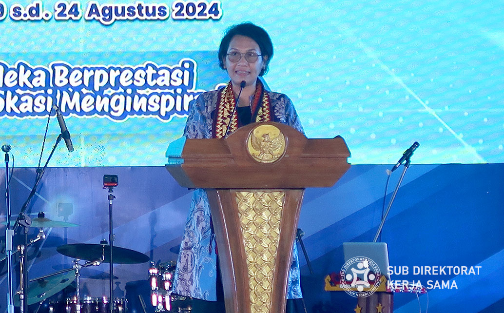 Sekretaris Jenderal Kementerian Pendidikan, Kebudayaan, Riset, dan Teknologi, Ir. Suharti, M.A., Ph.D. Beliau menggarisbawahi komitmen pemerintah dalam meningkatkan kualitas pendidikan vokasi di Indonesia