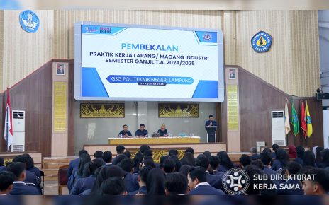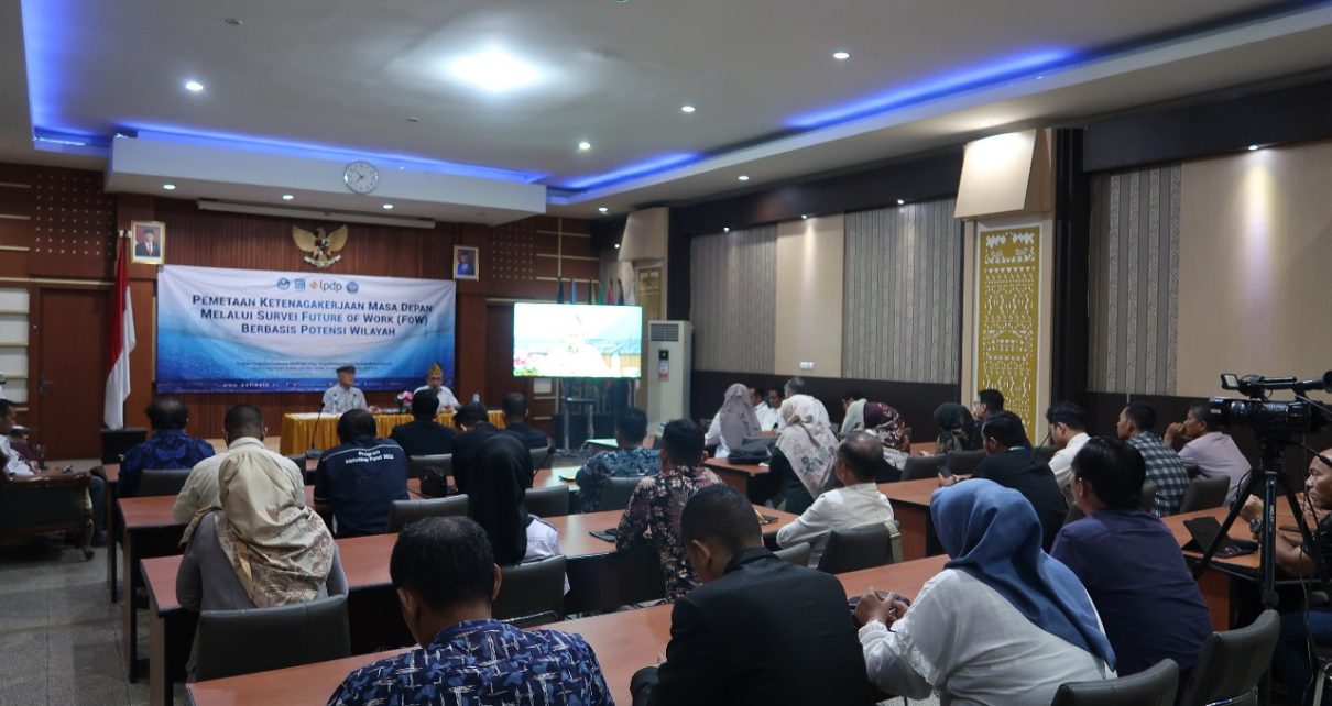 Polinela, Rabu (08/05/2024). Direktorat Kemitraan dan Penyelarasan Dunia Usaha dan Dunia Industri (Mitras DUDI), bersama dengan tim konsorsium Pusat Teknologi Pengembangan Produk Vokasi (PTPPV) Provinsi Lampung dan Bengkulu, menggelar Focus Group Discussion (FGD) dengan tema “Pemetaan Ketenagakerjaan Masa Depan” menggunakan survei Future of Work (FoW) berbasis potensi wilayah. Kegiatan dilaksanakan di Ruang Sidang Utama Polinela pada Rabu, 8 Mei 2024.