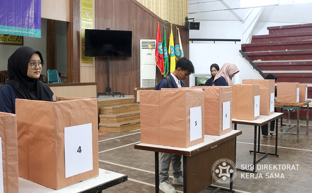 Polinela, Rabu (20/12/2023). Pemungutan Suara Pemilihan Umum Raya (Pemira) Politeknik Negeri Lampung (Polinela) 2023 berlangsung pada Senin, 18 Desember 2023 di gedung serba guna Polinela. Proses pemilihan ini melibatkan mahasiswa dari Jurusan Teknologi Pertanian (Tektan), Ekonomi dan Bisnis (Ekbis), serta Budidaya Tanaman Perkebunan dan Budidaya Tanaman Pangan.