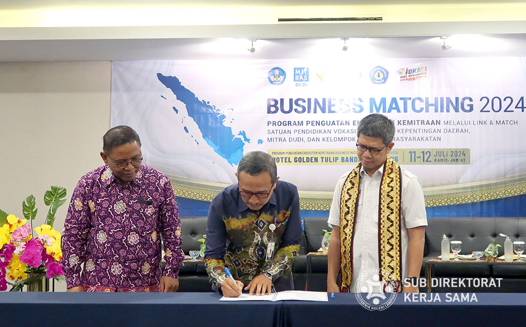 Polinela, Senin (15/07/2024). Kegiatan Penguatan Ekosistem Kemitraan (Business Matching) yang diadakan oleh Direktorat Kemitraan dan Penyelarasan Dunia Usaha dan Dunia Industri (Mitras DUDI) bersama dengan tim konsorsium Pusat Pengembangan Teknologi Produk Vokasi (PTPPV) Provinsi Lampung dan Bengkulu berjalan dengan sukses.