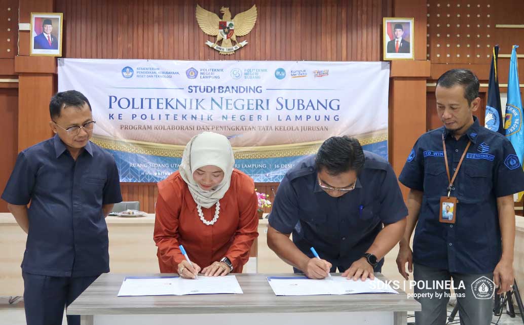 Politeknik Negeri Lampung (Polinela) dan Politeknik Negeri Subang (Polsub) resmi menjalin kerja sama strategis melalui penandatanganan Nota Kesepahaman (MoU) dan Perjanjian Kerja Sama (PKS)