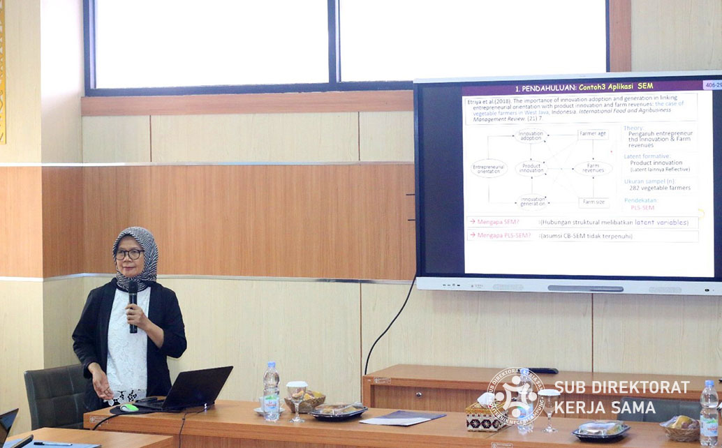 Selama pelatihan, peserta mendapatkan materi mendalam mengenai penggunaan SEM-PLS (Structural Equation Modeling-Partial Least Squares) dalam penelitian agribisnis. Sesi ini dilanjutkan dengan praktik langsung yang dipandu oleh Dr. Harmini. Pelatihan ini dirancang untuk meningkatkan kemampuan analisis data para peserta, dengan harapan dapat mendukung penelitian yang lebih berkualitas di bidang agribisnis.