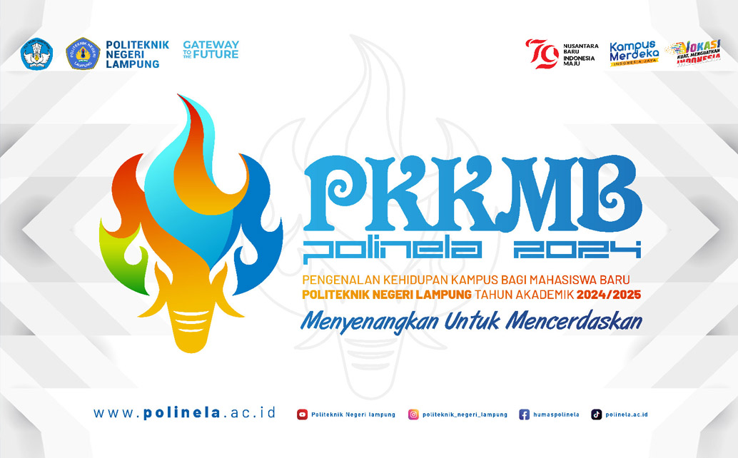 Pengenalan Kehidupan Kampus bagi Mahasiswa Baru (PKKMB) dalam rangka untuk meningkatkan rasa persatuan dan kesatuan bangsa, cinta tanah air serta pengenalan kegiatan kokurikuler (intrakurikuler) maupun kegiatan ekstrakurikuler untuk mempercepat adaptasi mahasiswa baru dengan lingkungan kampus Politeknik Negeri Lampung. Kegiatan PKKMB di agendakan terselenggara pada tanggal 9, 12 s.d. 17 Agustus 2024.