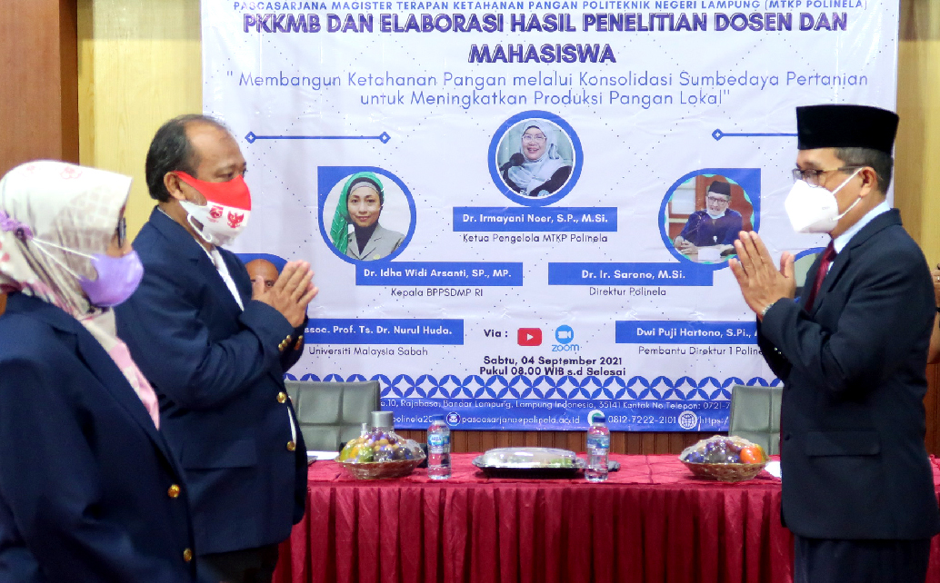 Polinela, Senin (06/09/2021). Direktur Politeknik Negeri Lampung (Polinela) Dr. Ir. Sarono, M.Si. pada hari Sabtu tanggal 4 September 2021 mengukuhkan 9 mahasiswa baru Program Pascasarjana Magister (S2) Terapan Pertanian Program Studi Ketahanan Pangan dalam acara Kuliah Umum Perdana dan Pengenalan Kehidupan Kampus Mahasiswa Baru (PKKMB) Tahun Akademik 2021/2022. Kegiatan dilaksanakan secara luring di Kampus Polinela dengan tetap menerapkan protokol kesehatan. Sekaligus dalam kegiatan ini dilaksanakan juga acara Kuliah Umum Perdana dan Elaborasi hasil hasil penelitian Doktor di Polinela dan mahasiswa program studi S2 angkatan 1 yang saat ini berada pada Semester 3.