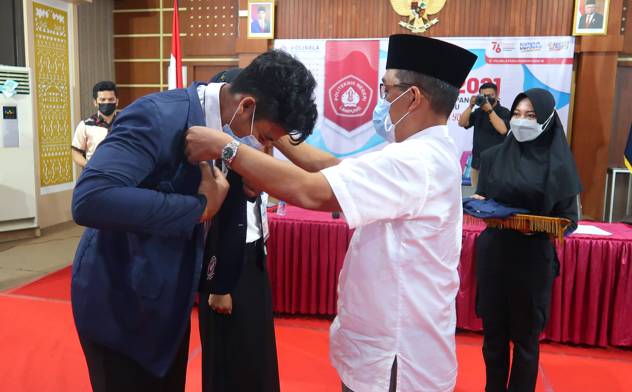 Polinela, Jum’at (27/08/2021). Direktur Politeknik Negeri Lampung (Polinela) Dr. Ir. Sarono, M.Si. mengukuhkan mahasiswa baru sekaligus menutup rangkaian kegiatan PKKMB Polinela Tahun Akademik 2021/2022 didampingi Pembantu Direktur III, Ir. Beni Hidayat, M.Si. Acara hari ke 3 atau hari terakhir ini dengan penjelaskan Profil dan Proses Belajar Mengajar (PBM) Jurusan dan Program Studi oleh Ketua Jurusan (Kajur) dan Ketua prgram Studi (Ka Prodi). Pengenalan ini bertujuan agar setiap mahasiswa memahami PMB, lingkungan, dan sarana prasarana yang ada di Jurusan dan Prodinya masing-masing.