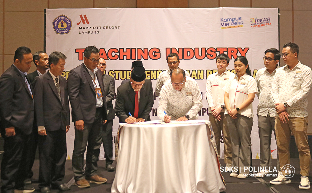 Penandatanganan dilakukan oleh Direktur Polinela, Prof. Dr. Ir. Sarono, M.Si., yang didampingi oleh jajaran direksi Polinela, serta Edi Sudiar, selaku Director of Human Resources dari Lampung Marriott Resort & Spa.