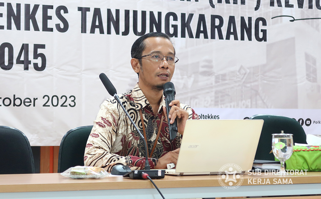 Polinela, Rabu (04/10/2023). Dalam upaya memajukan penyelenggaraan tri darma perguruan tinggi di bidang kesehatan di Provinsi Lampung, Politeknik Negeri Lampung dan Itera diundang sebagai narasumber utama dalam kegiatan Workshop Penyusunan Rencana Induk Pengembangan (RIP) Reviu III periode 2025-2045, yang diselenggarakan oleh Poltekkes Kemenkes Tanjungkarang. Kegiatan di laksanakan di Gedung Direktorat Poltekkes Tanjungkarang.