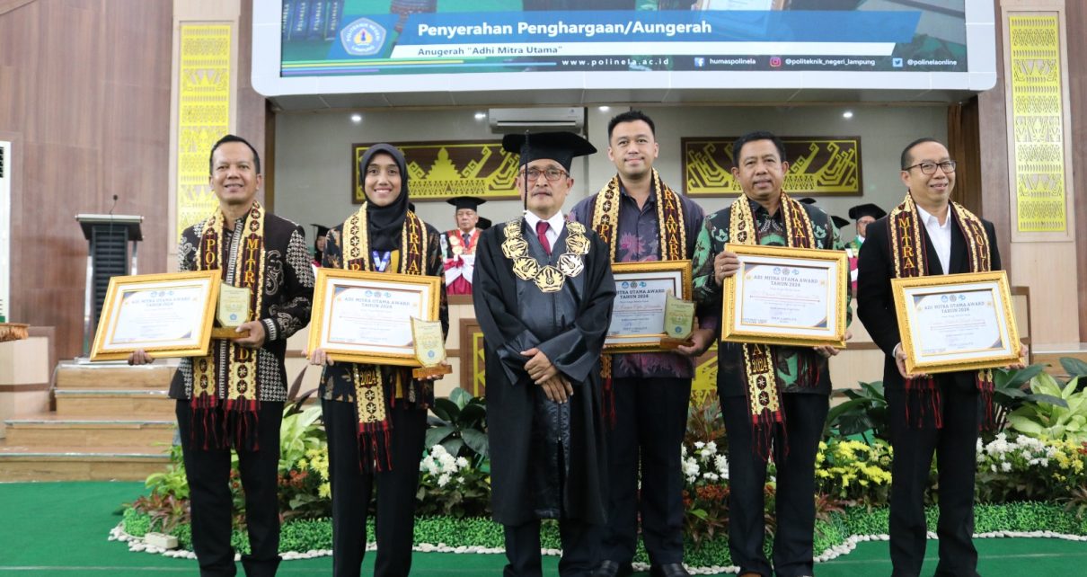 Selain itu, Polinela memberikan penghargaan “Adhi Mitra Utama” kepada enam mitra yang telah menjalin kerja sama yang baik dengan institusi ini. Para penerima penghargaan ini termasuk PT. Bukit Asam Tbk., PT. Great Giant Pineapple, Emersia Hotel & Resort Lampung, PT. Enigma Cipta Humanika, PT. Louis Dreyfus Company Indonesia, dan PT. Charoen Pokphand Indonesia Tbk. Ini adalah langkah penting dalam memperkuat hubungan antara Polinela dan para mitra industri untuk meningkatkan kualitas pendidikan dan kontribusi terhadap masyarakat.