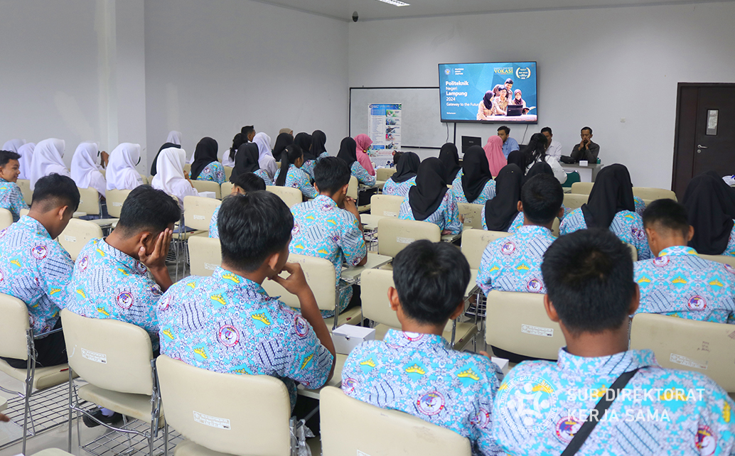 Polinela, Selasa (05/11/2023). Politeknik Negeri Lampung (Polinela) menerima kunjungan dari SMA Negeri 1 Candipuro dalam upaya untuk memberikan wawasan kepada siswa-siswi kelas 12 tentang dunia perkuliahan dan menumbuhkan minat mereka untuk melanjutkan ke perguruan tinggi.