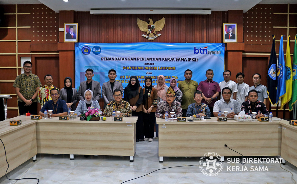 Polinela, Selasa (11/02/2025). Politeknik Negeri Lampung (Polinela) resmi menjalin kerjasama dengan PT. Bank Tabungan Negara (Persero) Tbk Kantor Cabang Syariah Bandar Lampung dalam Program Pengembangan Operasional (PPO). Perjanjian ini ditandatangani langsung oleh Direktur Polinela, Prof. Dr. Ir. Sarono, M.Si., dan Asti Kumala Putri selaku Branch Manager BTN Syariah Bandar Lampung.