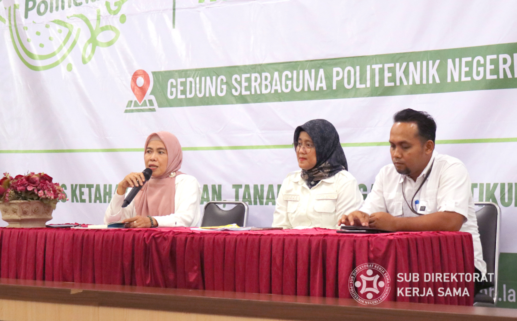 Turut hadir dalam kegiatan ini Koordinator Program Studi Teknologi Pangan, Dr. Surfiana, S.P., M.Si., yang memberikan dukungan penuh terhadap kegiatan ini sebagai langkah nyata dalam meningkatkan kualitas pendidikan di Polinela.