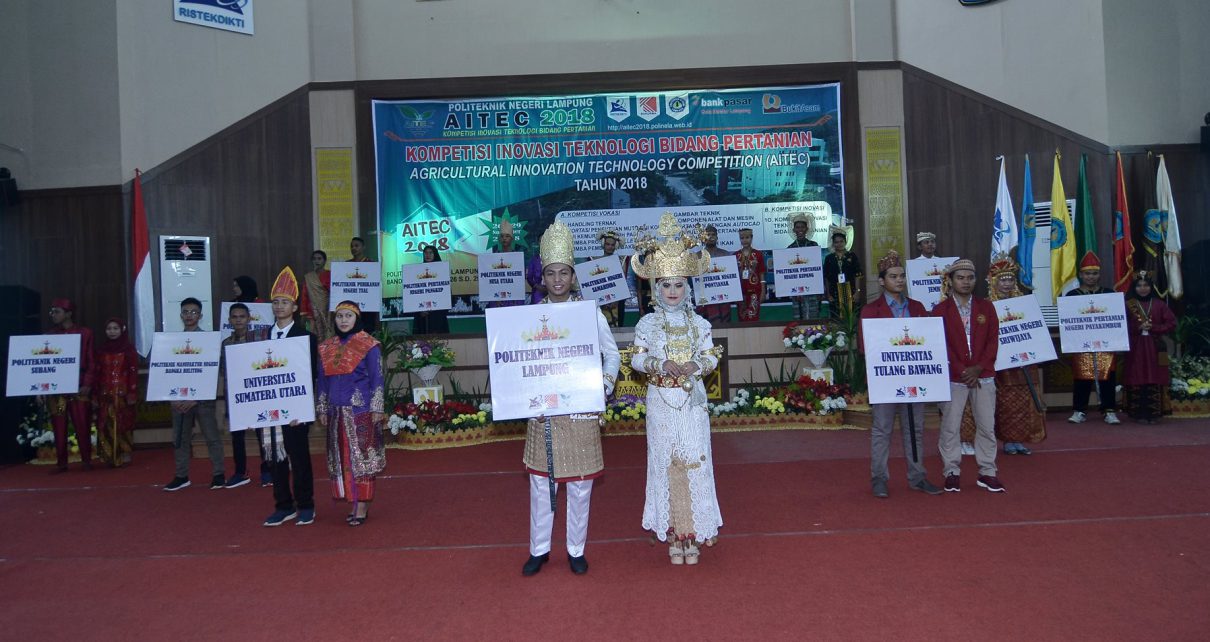 POLINELA, Senin (26/11/2018) Bertempat di gedung serbaguna Politeknik Negeri Lampung, Direktur Politeknik Negeri Lampung (Polinela) Dr. Ir. Sarono, M.Si didampingi Ketua Pelaksana Ir. Bambang Utoyo, MP membuka secara resmi Agricultural Innovation Technology Competition (AITEC) atau Kompetisi Inovasi Teknologi Bidang Pertanian 2018, Kompetisi ini diselenggarakan di Politeknik Negeri Lampung dengan mengusung tema “Penguatan Kompetensi dan Modernisasi Teknologi Bidang Pertanian di Era Revolusi Industri 4.0”.
