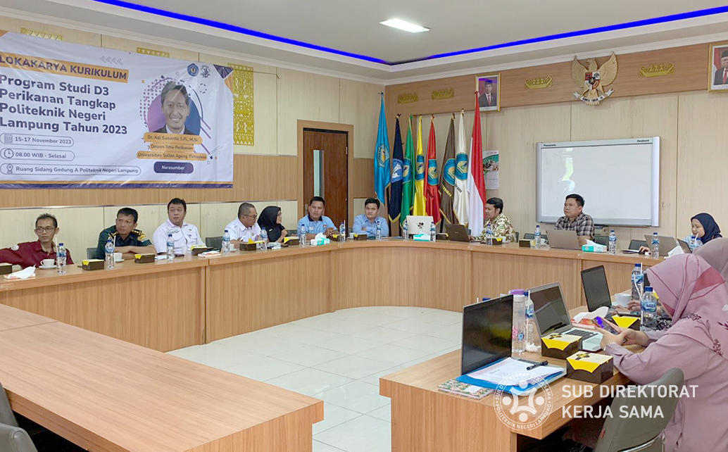 Polinela, Selasa (21/11/2023). Program Studi Perikanan Tangkap Politeknik Negeri Lampung (Polinela) menggelar Focus Group Discussion (FGD) dan Lokakarya selama tiga hari, terhitung 15-17 November 2023, bertempat di Ruang Sidang A. Kegiatan membahas pengembangan kurikulum Program Studi Perikanan Tangkap guna menyesuaikan diri dengan tuntutan dan perkembangan terkini di bidang perikanan.