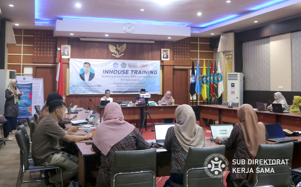 Polinela, Selasa (24/10/2023). Politeknik Negeri Lampung (Polinela) melalui program studi Agribisnis Pangan melaksanakan Inhouse Training Multidimensional Scaling and Rapid apraisal For Sustainability. Bertempat di ruang sidang utama Polinela pada Senin 23 Oktober 2023.