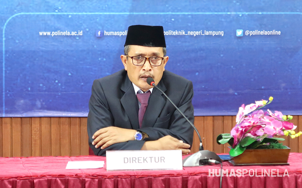 Direktur Polinela Dr. Ir. Sarono, M.Si menjelaskan mengenai profil Polinela dan sistem baru PMB tahun 2023.