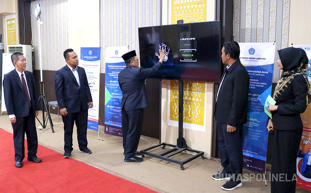 Launching PMB Polinela tahun akademik 2023/2024 secara simbolis ditandai dengan peletakkan telapak tangan pada layar sentuh oleh Direktur Polinela didampingi Wakil Direktur I, Wakil Direktur II, dan Wakil Direktur III. Selanjutnya untuk informasi PMB Polinela 2023 dapat dilihat di website https://pmb.polinela.ac.id dan di media sosial resmi Politeknik Negeri Lampung.