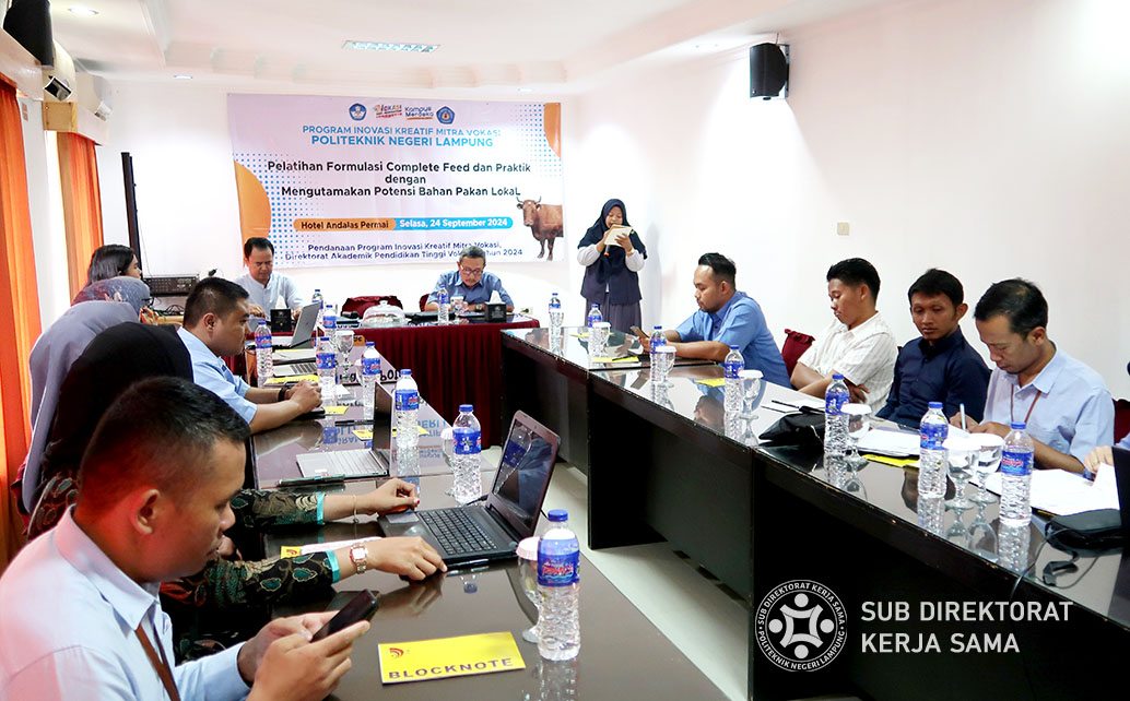 Polinela, Rabu (25/09/2024). Jurusan Peternakan Politeknik Negeri Lampung (Polinela), terdiri dari Program Studi Teknologi Pakan Ternak, Program Studi Teknologi Produksi Ternak, dan Program Studi Agribisnis Peternakan, menyelenggarakan kegiatan Pelatihan Formulasi Complete Feed. Pelatihan ini berfokus pada penerapan ilmu dalam merancang formulasi pakan ternak yang efisien dan berkualitas, dengan memanfaatkan potensi bahan pakan lokal yang melimpah di wilayah sekitar.