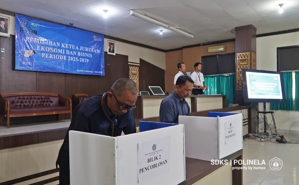 Polinela, Kamis (08/05/2025). Politeknik Negeri Lampung (Polinela) kembali menegaskan komitmennya terhadap prinsip demokrasi dalam kepemimpinan internal dengan menyelenggarakan Pemilihan Ketua Jurusan Ekonomi dan Bisnis untuk periode 2025–2029. bertempat di Gedung Sakura Polinela.